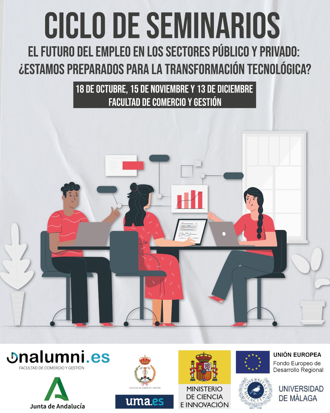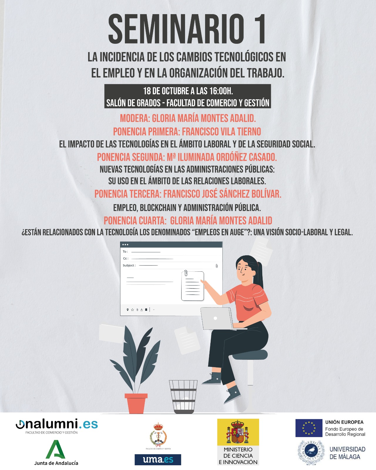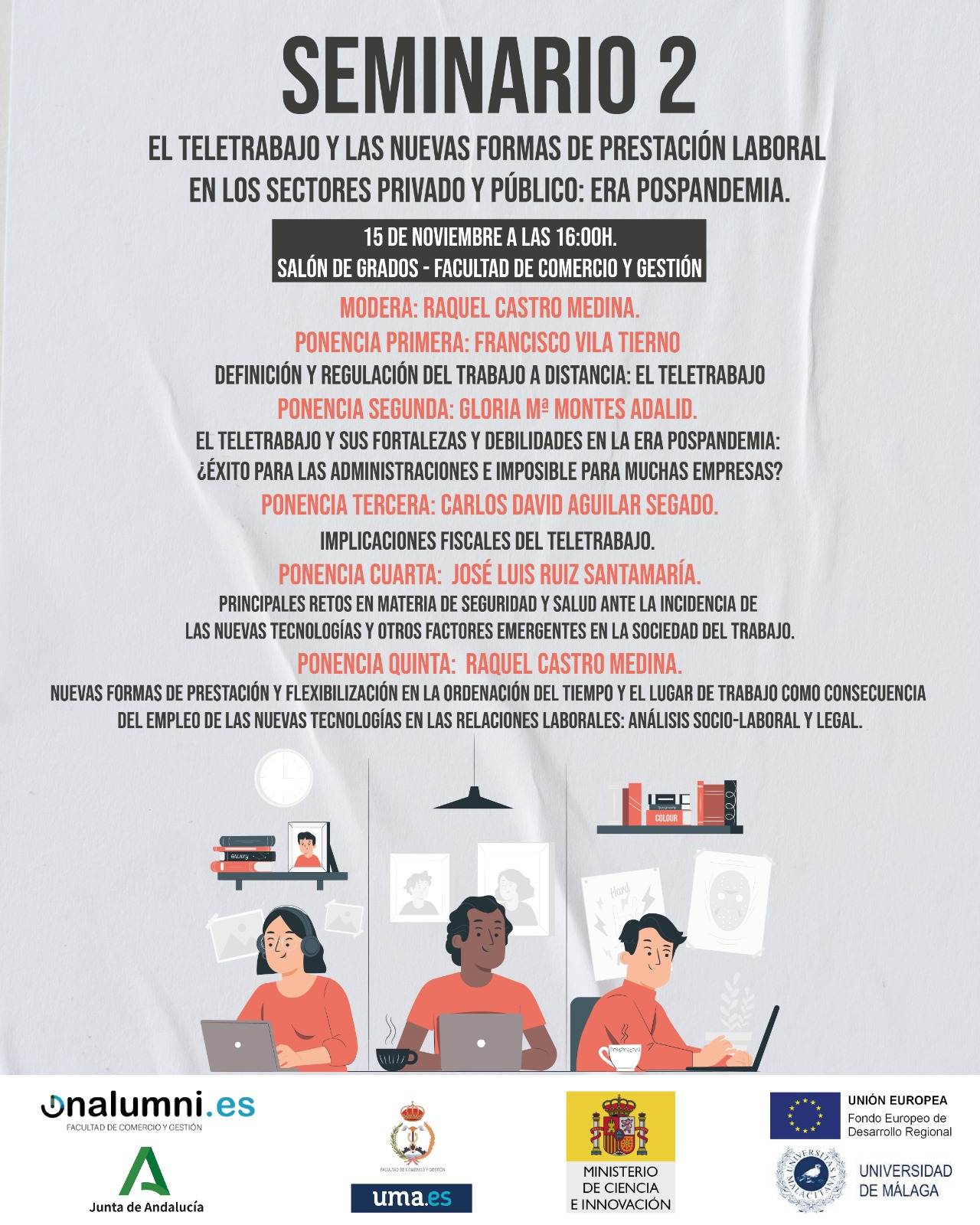 Los dos seminarios se desarrollarán de manera presencial en el Salón de Grados de la Facultad de Comercio y Gestión de la Universidad de Málaga en el horario que se indica en el programa.